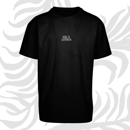RAD10N: Decennial Revelry Oversized Tee - Black shirt White print
