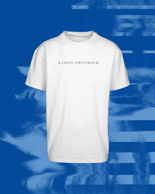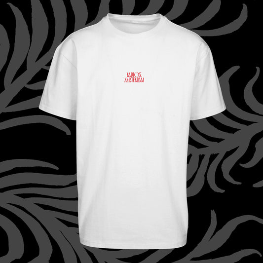 RAD10N: Decennial Revelry Oversized Tee - White shirt Grey print